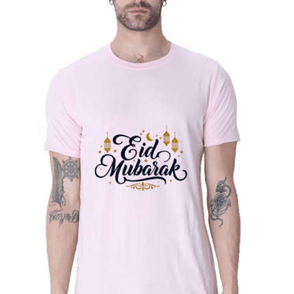 Celebrate Eid in style with this Elegant Eid Mubarak Calligraphy T-Shirt. Featuring intricate Arabic calligraphy with crescent moons and stars on a crisp white & Light Baby Pink background, this Islamic festive wear is perfect for the special occasion. Soft, breathable fabric ensures all-day comfort.
