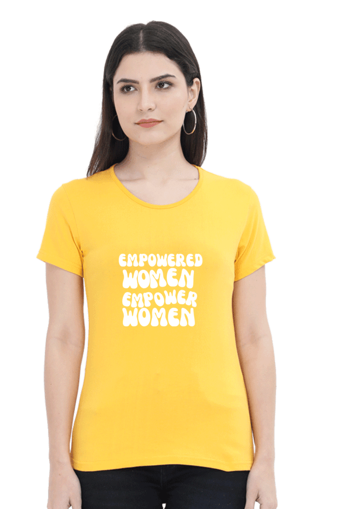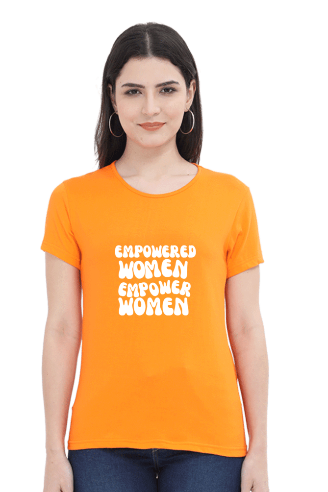 Empowered Women Empower Women – Female Round Neck Half Sleeve T-Shirt is a tribute to the strength and resilience of women in India. This high-quality T-shirt features the empowering message “Empowered Women Empower Women” in a striking design, perfect for those who believe in uplifting and supporting each other.