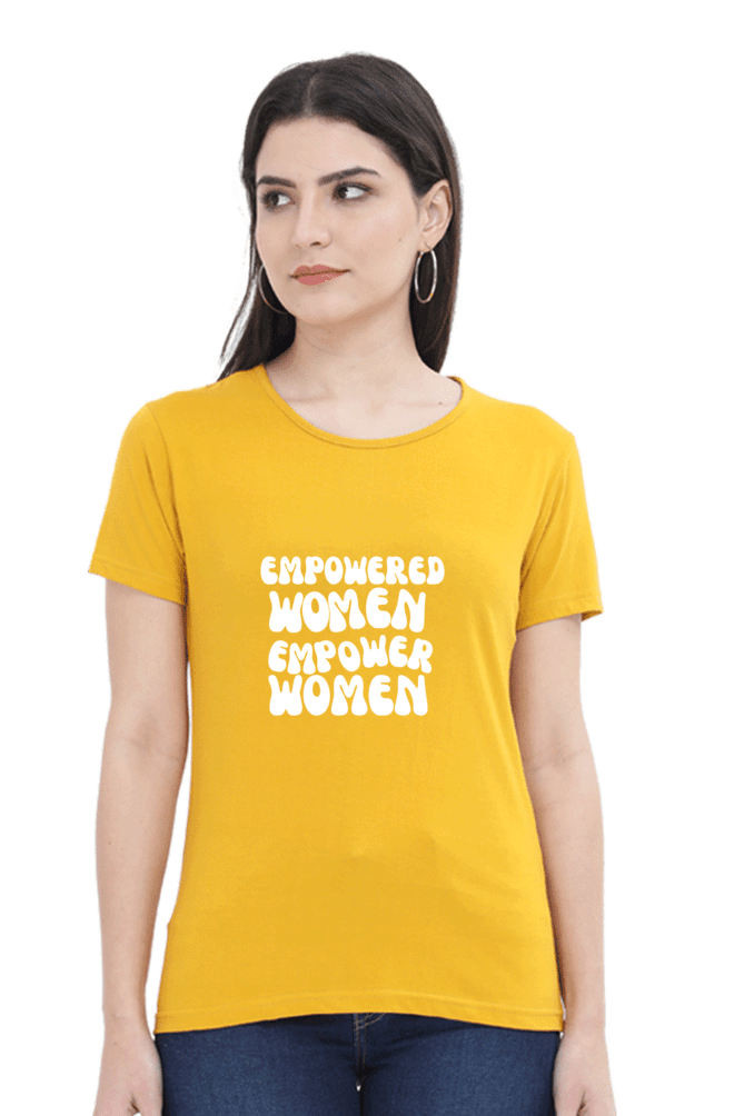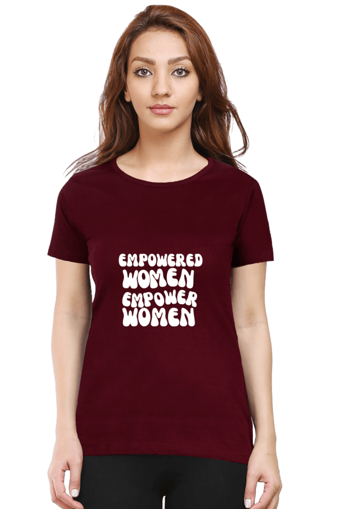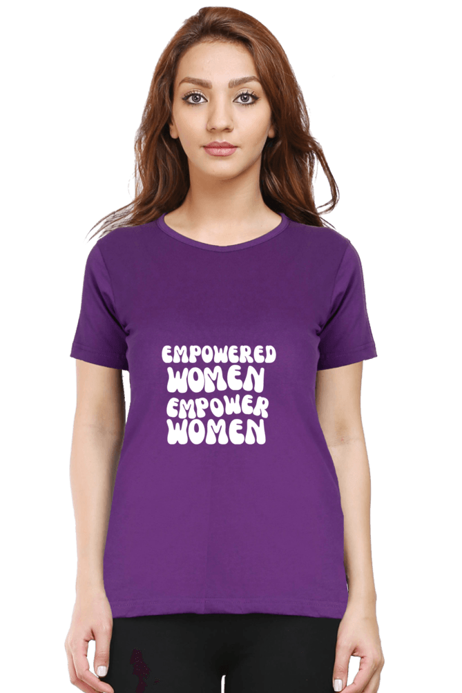 Available in sizes M, L, and XL, this half-sleeve, round-neck T-shirt is designed to fit various body types, ensuring a perfect fit for every woman. Wear it with pride and let the world know that empowered women truly empower women.